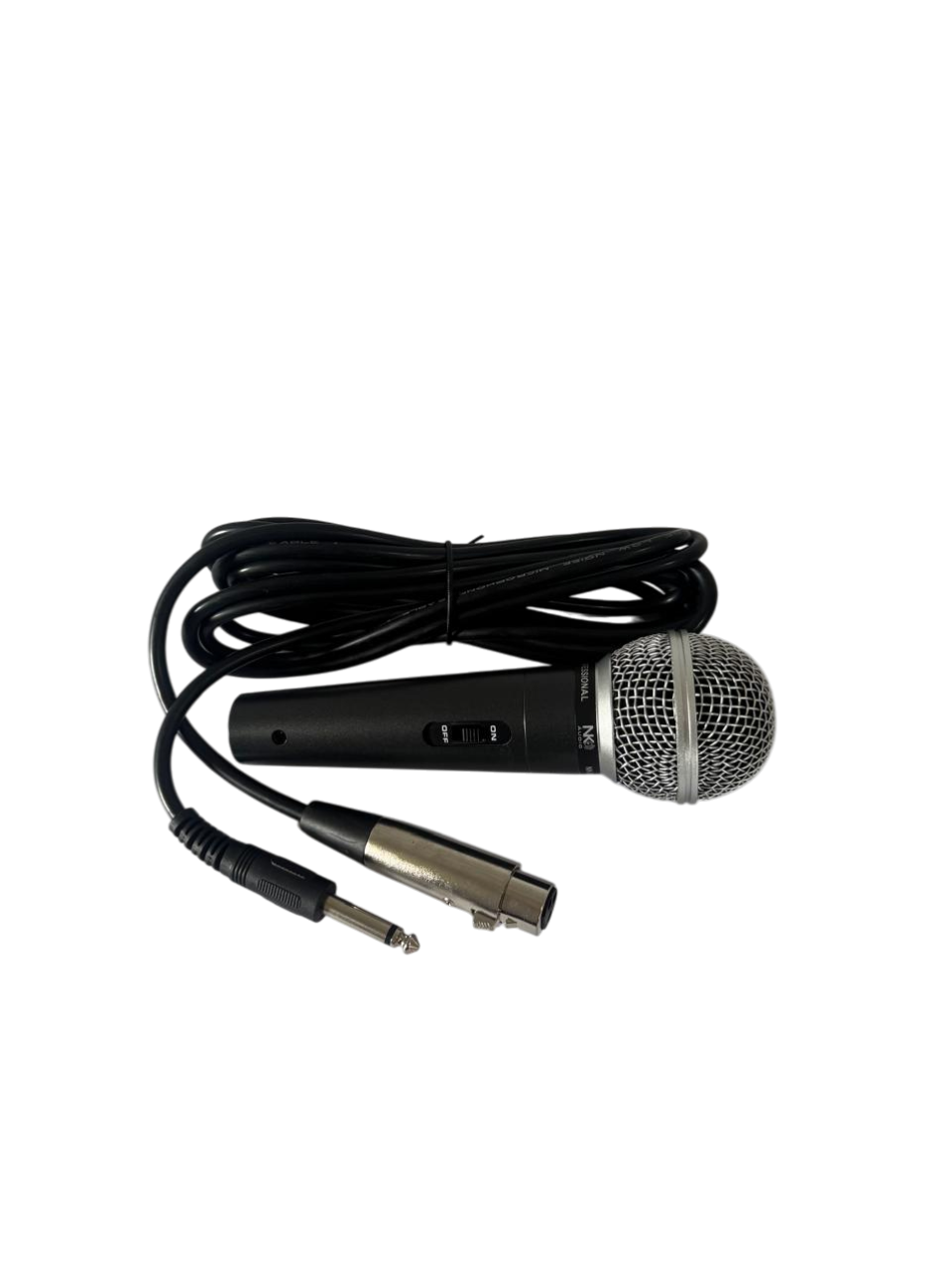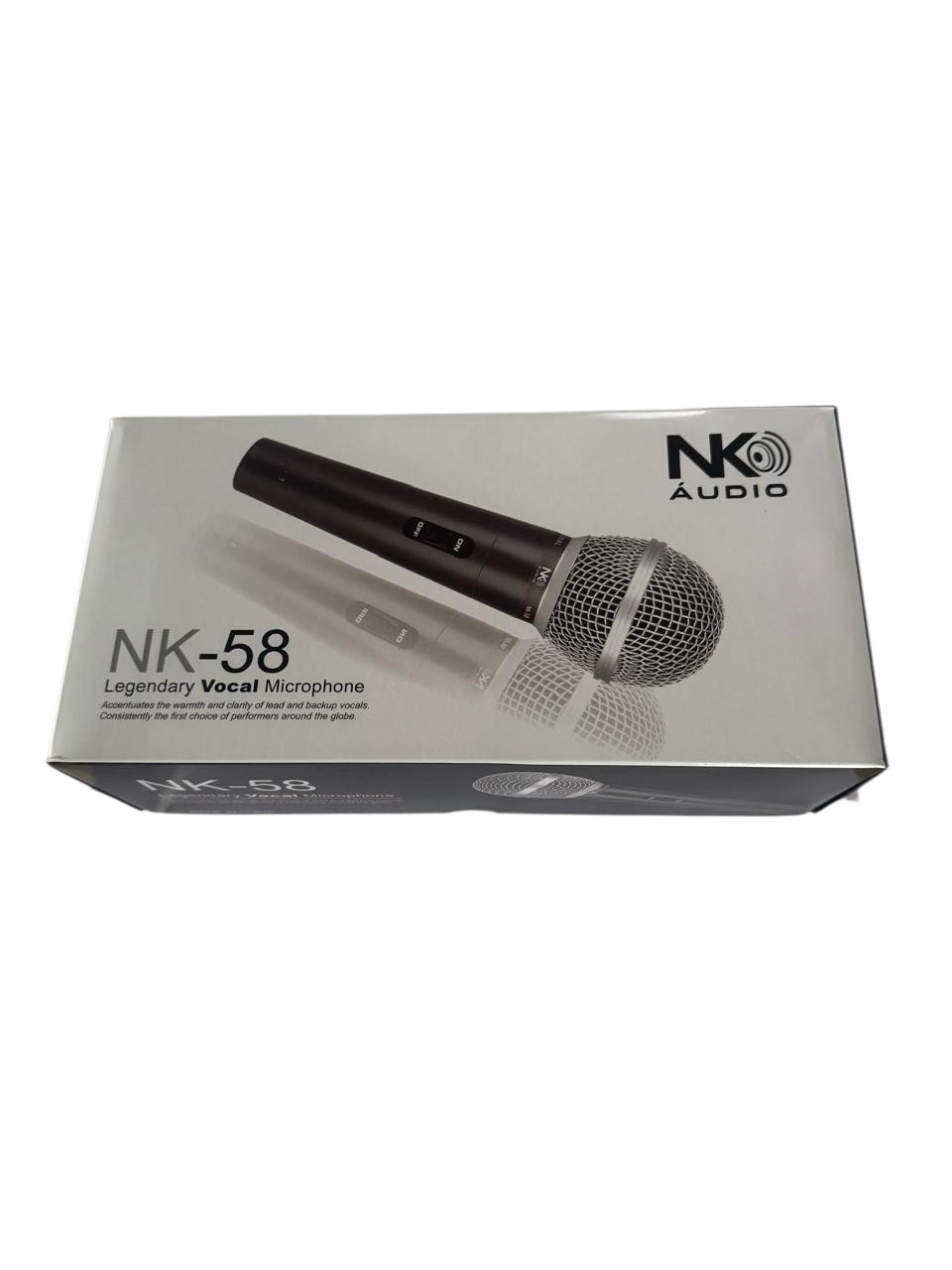Microfone dinâmico   NK58 com cabo XLR / XLR de 5 metros, Unidirecional. Impedância Nominal: 290 Ω     Resposta de frequência: 50Hz a16KHzSensibilidade: -51DbSensibilidade do campo magnético: 50HzGlobo de tela em aço
